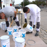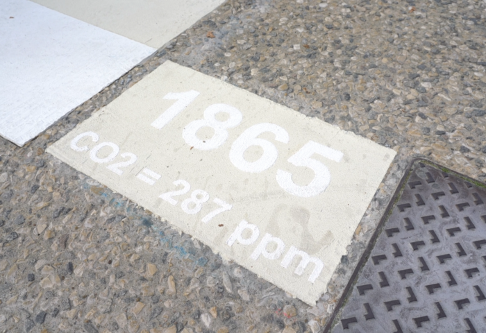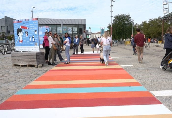 Le collectif PASSALACT a porté auprès de la Ville de La Rochelle un projet de réalisation au sol d’une fresque du climat, sur le modèle des Warming Stripes créées par le climatologue Ed Hawkins.