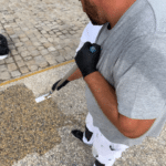 - en ponçant au disque diamant le béton désactivé pour éliminer au mieux les aspérités